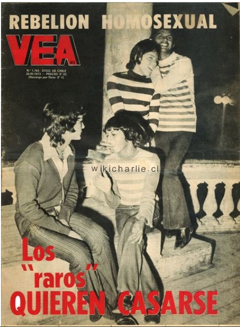 - 1973: Se organiza la primera protesta de "mariconcitos" o "colitas" en el país, debido a su deseo de poder casarse entre ellos. La revista "VEA" saca en portada una foto que titula "Los raros quieren casarse". Ese 22 de abril, doce travestis que ejercían la prostitución, iniciaron la "rara" protesta en la Plaza de Armas.