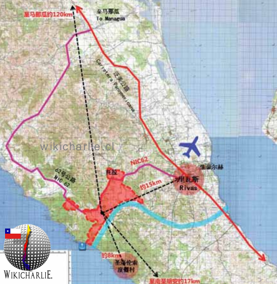 Un canal artificial cortaría el Istmo de Rivas (su punto más bajo está a 56 msnm) y alcanzaría el océano Pacífico en San Juan del Sur.