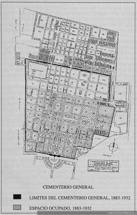 - ↑ memoriachilena/Historia i tradiciones del Cementerio Jeneral de Santiago/1890/Libro en PDF