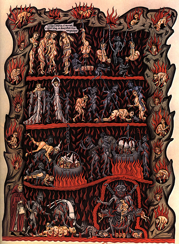 En cualquier caso, la religión católica históricamente ha asociado el infierno como algo que se encontraba "debajo" de la tierra1 y asociado al fuego[6] y al sufrimiento.[7]