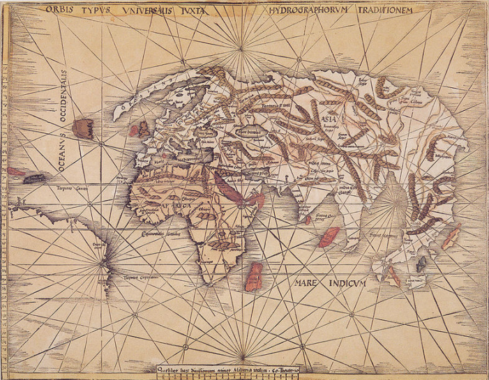 Adjunto al atlas de Ptolomeo editado en Estrasburgo en 1513 Waldseemüller publicó un nuevo planisferio: Orbis typus universalis iuxta hydrographorum traditionem, con notables diferencias respecto del publicado en 1507, lo que hace pensar que pudiera haber sido dibujado con anterioridad, hacia 1505-1506. La introducción al atlas indica que la información para las nuevas tierras procede del almirante, en alusión probablemente a Cristóbal Colón.