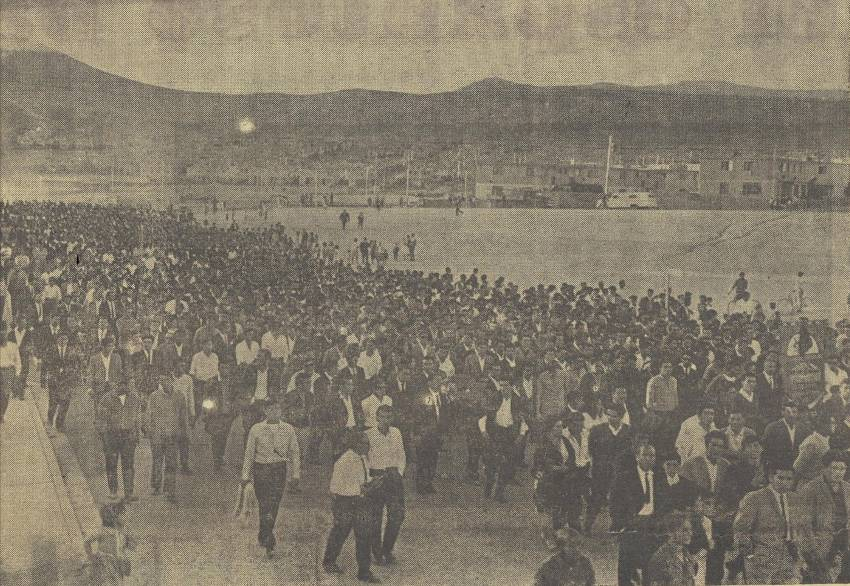 Llegando gran cantidad de obreros y familias a la concentración de la Plaza de los Artesanos, donde se reunieron alrededor de 35.000 personas, cifra bastante más alta que la que reunió Eduardo Frei Montalva en su acto el día anterior (3.500 personas).