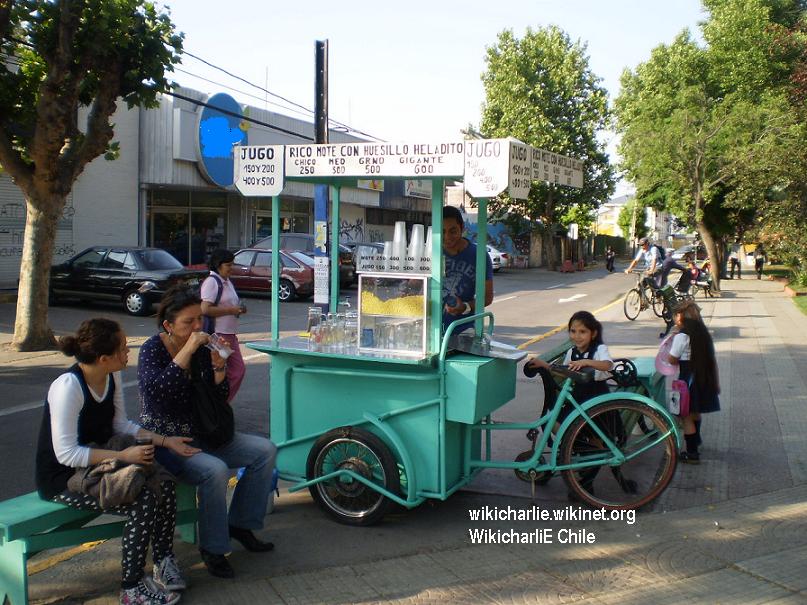 “En el verano está el mote con huesillos que es refresco y postre con chilenidad, por algo se dice: Más chileno que el mote con huesillo, aunque los araucanos adoptaron de los quechuas la palabra mot’e, mut’i, para el maíz o trigo cocido”.
