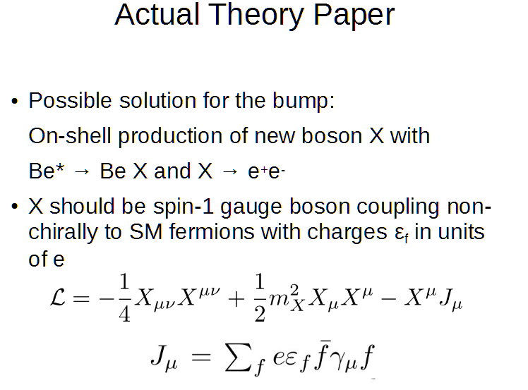 El trabajo de la UCI demuestra que en lugar de ser un fotón oscuro, la partícula puede ser una 'X Higgs protophobic'. Mientras que la fuerza eléctrica normal actúa sobre los electrones y protones, esta nueva partícula de Higgs interactúa únicamente con electrones y neutrones y en una gama muy limitada.