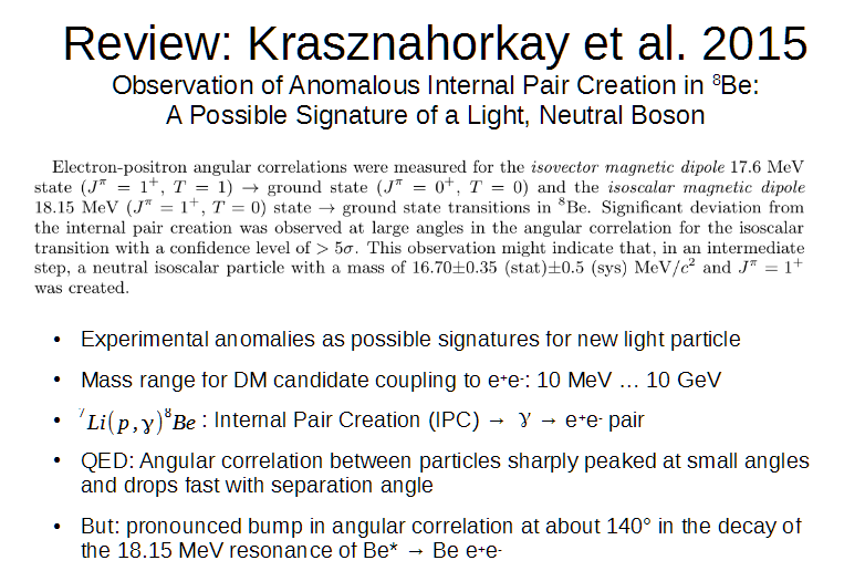 Los investigadores de la UCI comenzaron el estudio a través de uno iniciado por los físicos nucleares húngaros que estaban buscando "fotones oscuros", unas partículas que significarían la materia oscura invisible, y que acabaron descubriendo una anomalía de la desintegración radiactiva que apunta a la existencia de una partícula de luz solo 30 veces más pesada que un electrón."Los científicos no fueron capaces de afirmar que era una fuerza nueva. Simplemente registraron un exceso de eventos que indicaban una nueva partícula, pero no estaba claro para ellos si se trataba de una partícula de materia o una partícula portadora de fuerza", ha apuntado el autor principal Jonathan Feng.